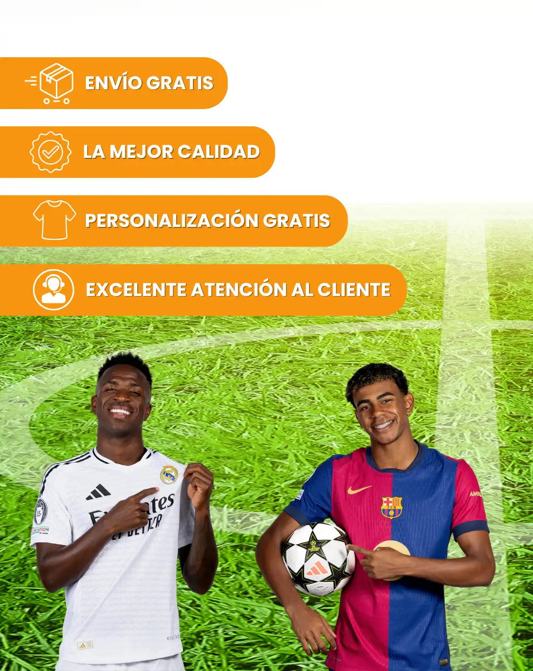 Nos comprometemos a ofrecer un servicio de atención al cliente personalizado y productos de la mejor relación calidad-precio, permitiendo que todos los aficionados puedan vestir la camiseta de su equipo favorito 👕