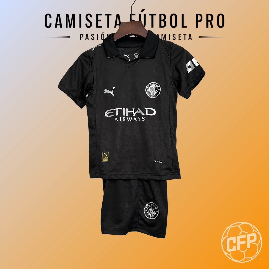 Camiseta Manchester City 2025-26 Niños Segunda Equipacion (Conjunto completo)