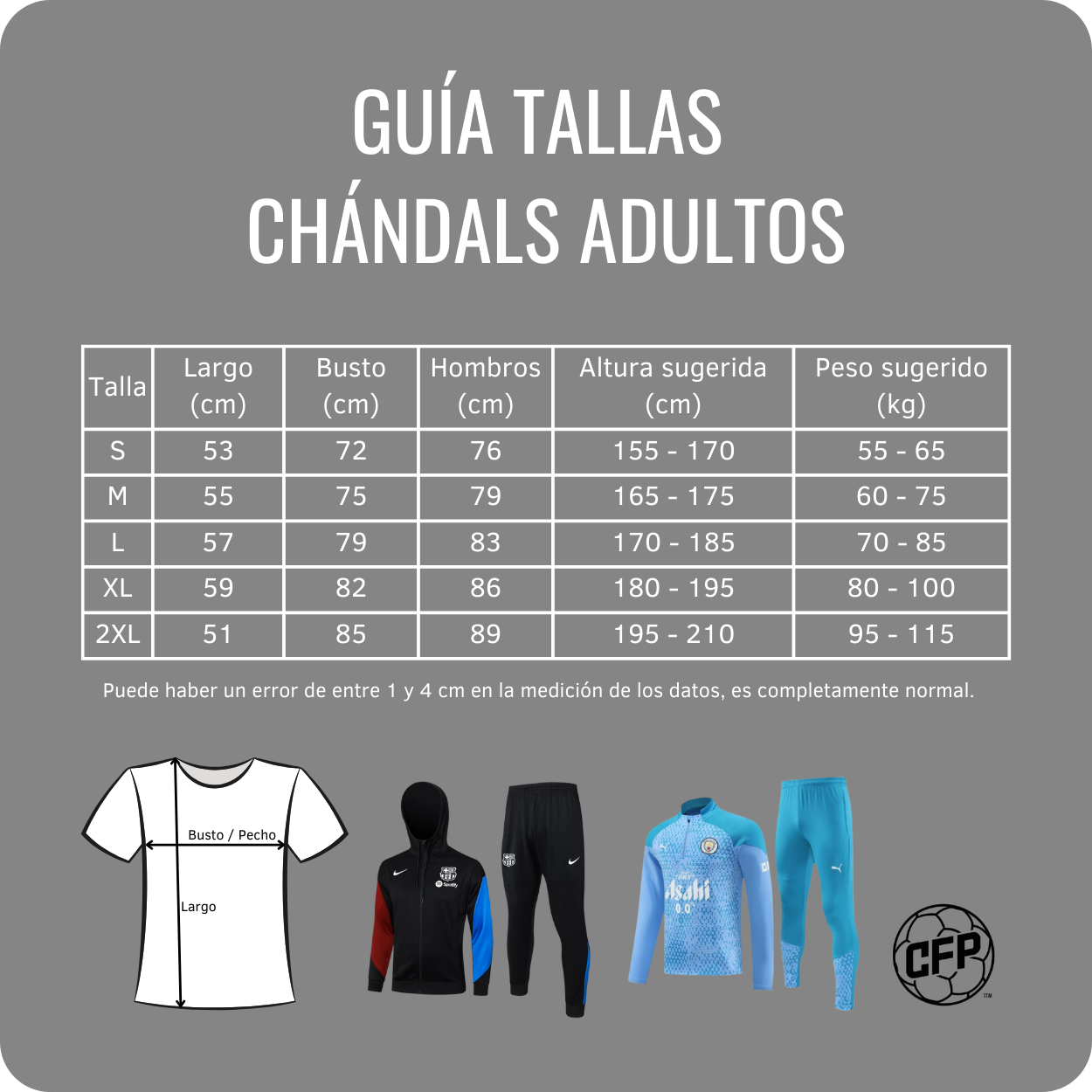 - Consulta nuestra tabla de tallas para encontrar el ajuste perfecto del chándal Manchester United 2024-25 adultos.